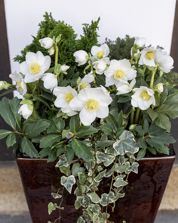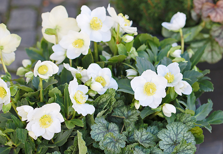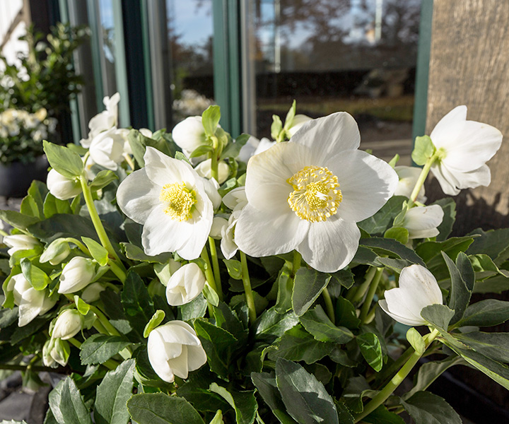 Die WinterSun® Helleborus blühen wochenlang mitten im Winter und die WinterSun® Schneerosen sorgen zuverlässig für Farbe, wenn die Sommerpflanzen ihre Blühpause machen.